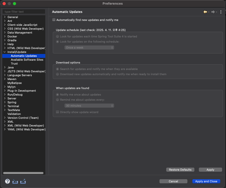 - STS3 => Oracle => Maven Repository 설치 => settingX 가동 가능