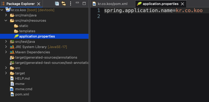 web.xml대신 application.properties 사용 or yml (사수가 쓰는거 따라서)