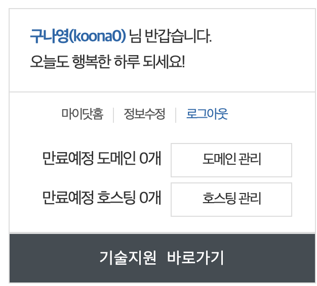 메인페이지 조금 내려서 여기 호스팅관리에서 내꺼 볼 수 있음