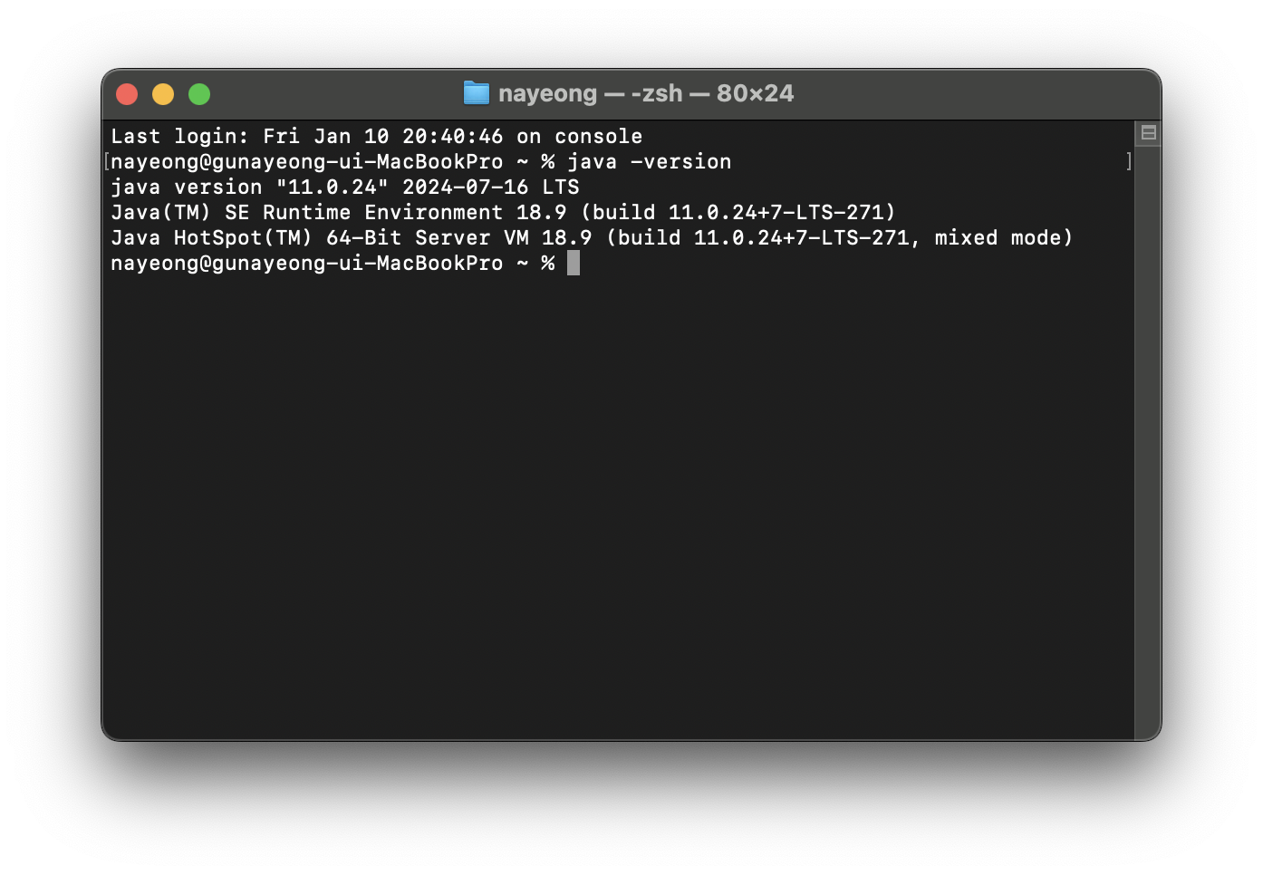 터미널에서 java -version 입력해서 버전 확인