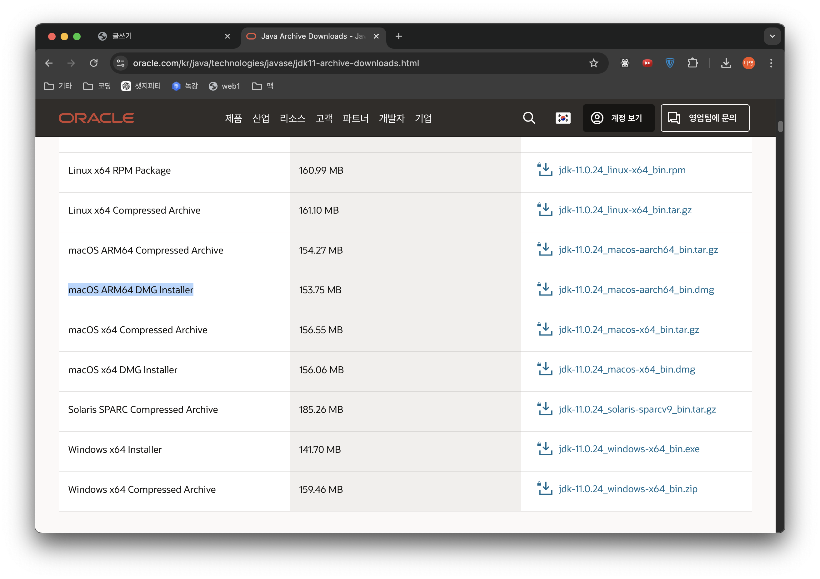 https://www.oracle.com/kr/java/technologies/javase/jdk11-archive-downloads.html