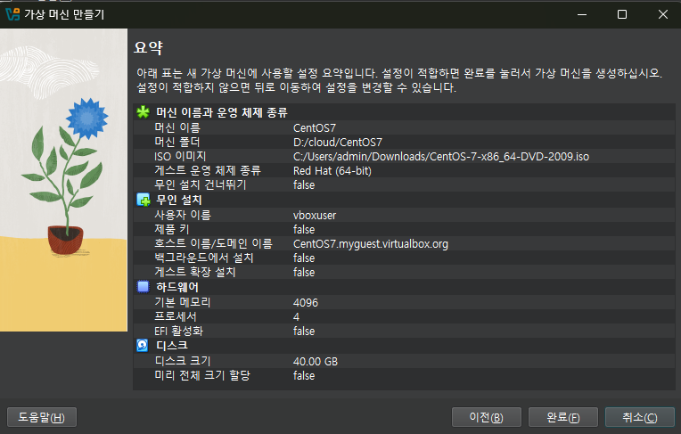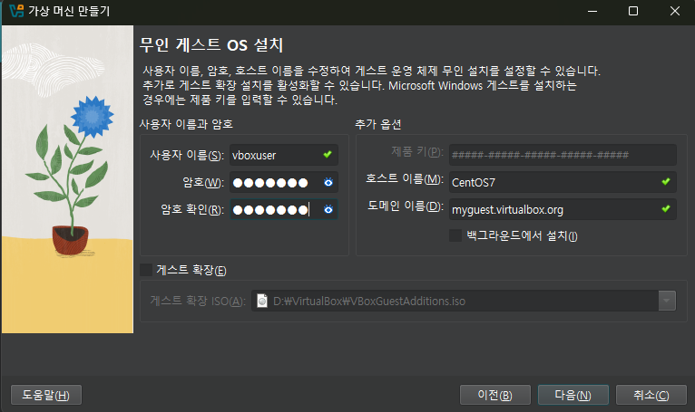 버추얼박스 센트오에스 다시 켜서 루트로 들어가기