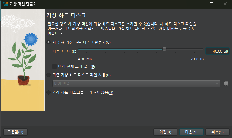 기본머신폴더 설정하기 => 여기에 리눅스를 깔거임