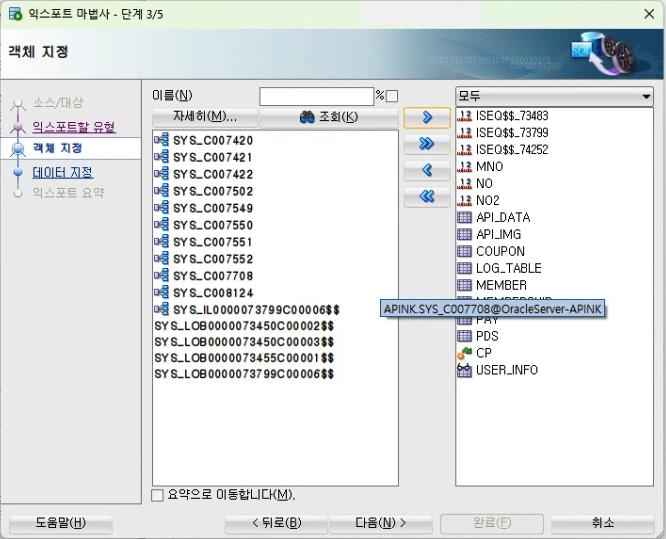 사용자가 다르거나 테이블스페이스 다르면 안됨 찾아서 다 바꾸기 컨f
