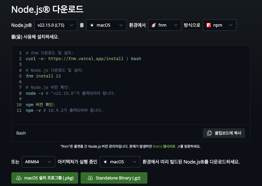 npm 설치 - 개발 pc에 전역 패키지 설치