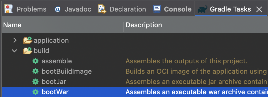 6. Gradle Task에 bootWar가 생김 => 빌드하기