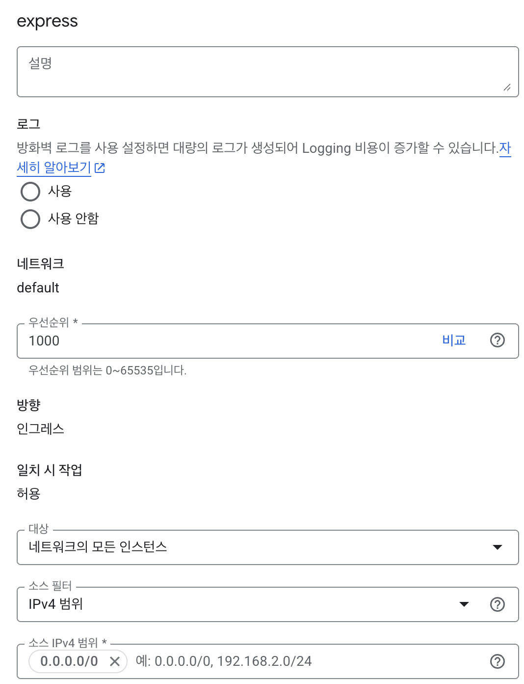 express를 위해 방화벽 규칙 추가해야함
