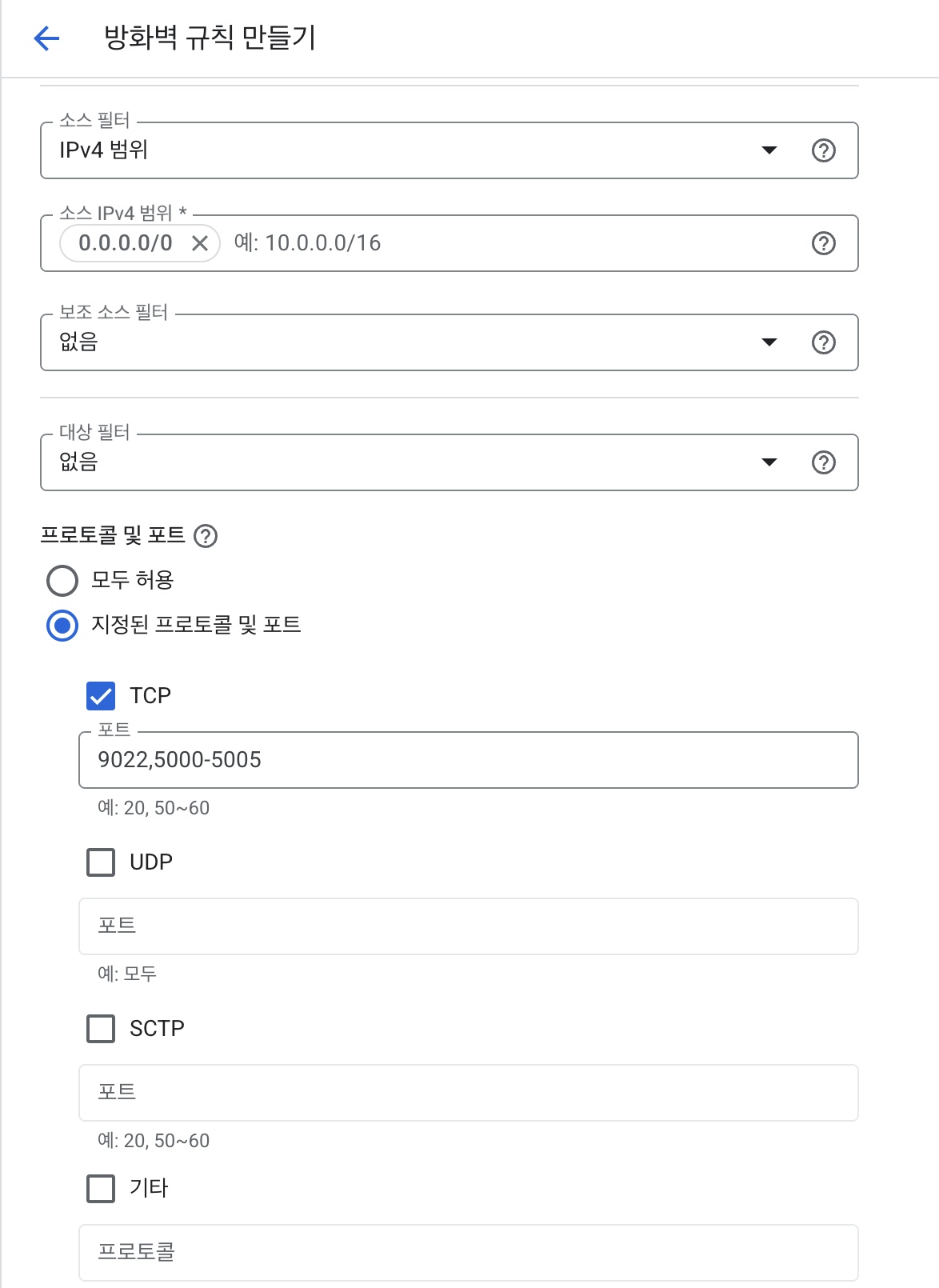 GCP 방화벽 규칙에는 소스필터와 대상필터 두가지 필터가 존재함
