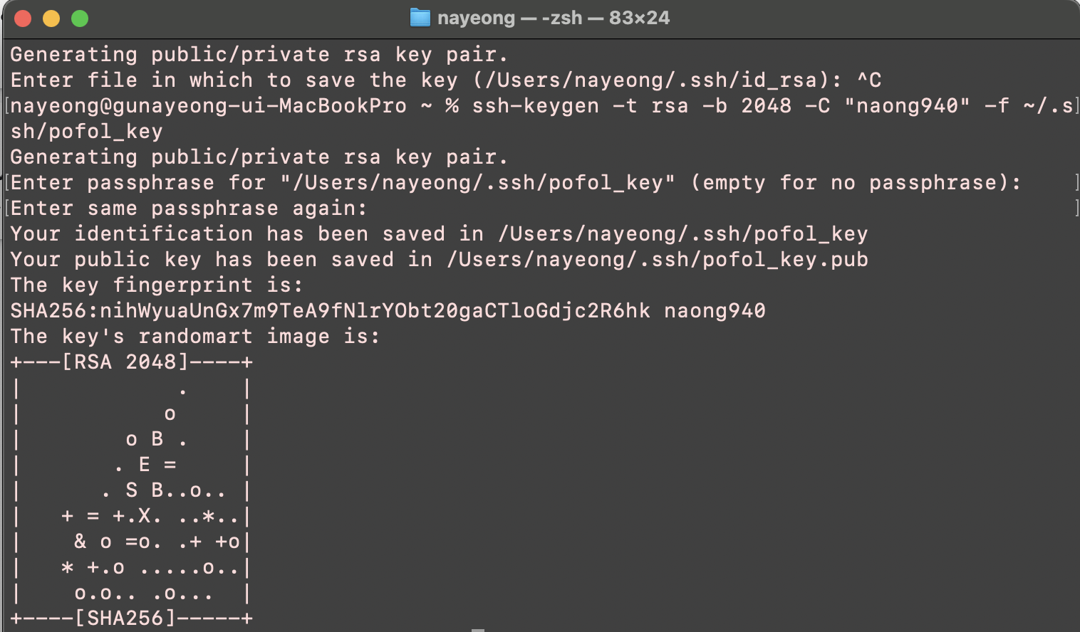 ssh-keygen -t rsa -b 2048 -C "naong940" -f ~/.ssh/pofol_key