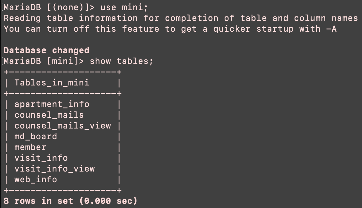 그냥 삭제도 안돼서 DROP DATABASE `mini`; 백틱으로 감싸서 삭제