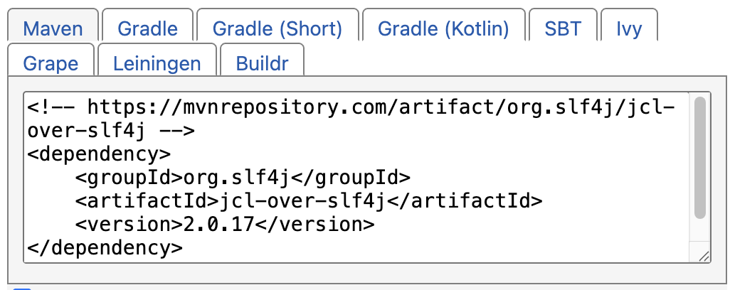 - https://mvnrepository.com/artifact/org.slf4j/jcl-over-slf4j/2.0.17